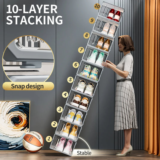 Shoe Storage Boxes Organizers for Closet Clear Stackable Sneaker Shoe Rack (Price per Shoe Box)